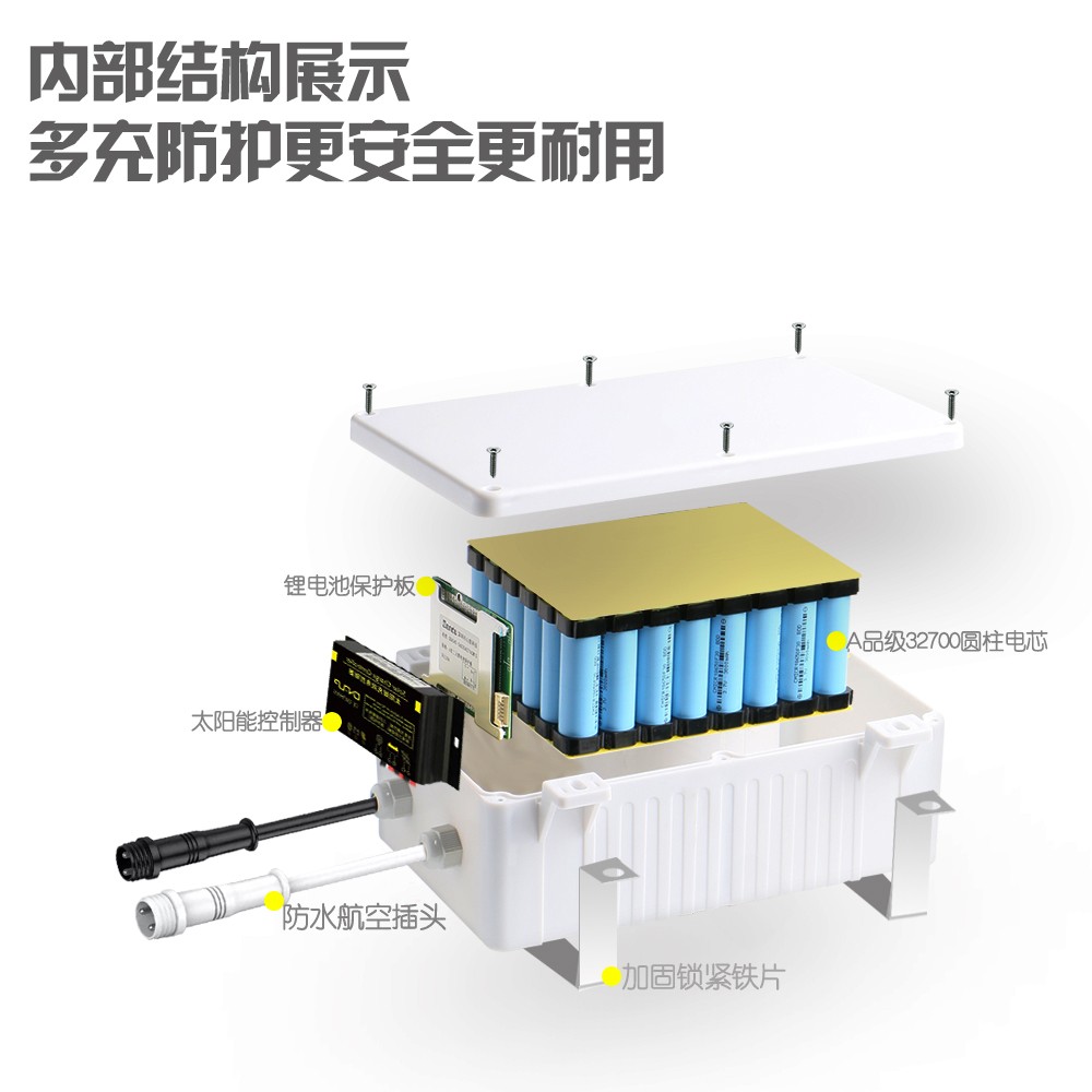 标称电压;12.8V 标称容量;25AH 标称能量;320WH 尺寸;236*106*85mm 重量:3.2kg 电芯材料;LiFePO4Max 最大充电电流;5A 最大放电电流;10A 负载功率;128W 充电控制器 ;可选 插头:DC防水接头 充电温度;0~+50 放电温度 ;-20~+55 循环寿命;2000 保质期;2years