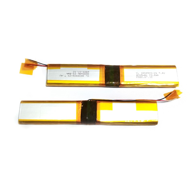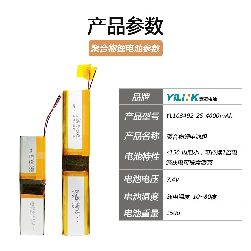 产品编号:YL103492-2S 规格型号:103492-2S1P-4000mAh-7.4V 标称电压:7.4V 标称容量:4000mAh 充电温度:0℃~+45℃ 放电温度:-10℃~+75℃ 产品尺寸:10*34*200mm 产品重量:160g