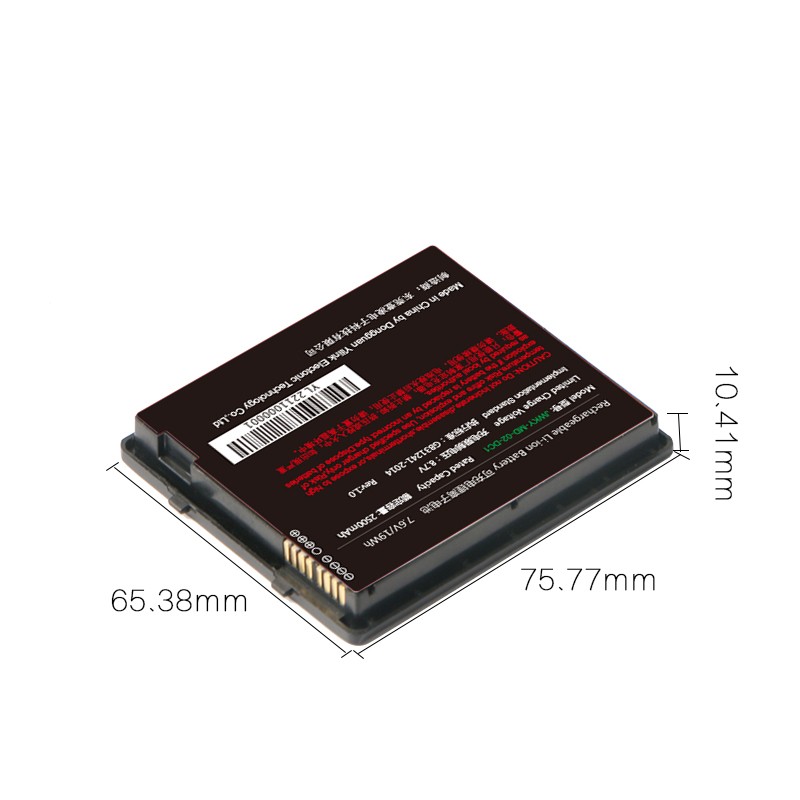 7.6V2700mAh 手持设备后备电池电芯型号:455767电池规格:2S1P/7.6V/2700mAh标称电压:7.6V标称容量:2700mAh充电电压:8.7V充电电流:1.3A放电电流:2A瞬间放电电流:2.7A放电截止电压:6V成品内阻:180mΩ电池重量:97g产品尺寸:10.5*65*75mm(Max)充电温度:0~45℃ 放电温度:-20-60℃存储温度:0~35℃电池外壳:ABS+PC 锂电保护:短路保护,过充保护,过放保护,过流保护等51漫画领域:手持设备产品特点数据通讯管理:采用进口日本精工IC、最大限度消除安全隐患。电池组安全、性能好,循环寿命长;电池组循环寿命高,符合低碳、节能、环保价值理念;电池支持耐高温80度下放电工作